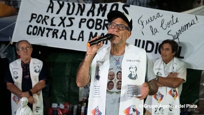 El sacerdote, integrante de los Curas en Opción por los Pobres, culminó los siete días de huelga de hambre frente a la sede de Tribunales, en reclamo a la renuncia de los miembros del máximo tribunal, bajo la consigna «Democracia sin mafia judicial».
