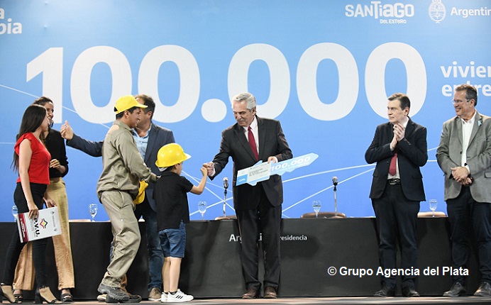 El Presidente Alberto Fernández encabezó este miércoles, junto al gobernador Gerardo Zamora, la entrega de 575 viviendas en la provincia de Santiago del Estero, con las que se alcanzaron las 100 mil adjudicadas desde el inicio de la gestión en todo el país.