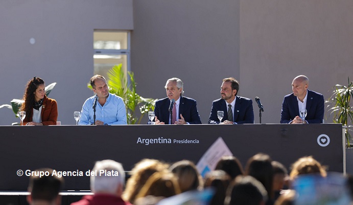Respecto de la política habitacional, Fernández destacó que lleva entregadas más de 105.000 viviendas, en contraste con las 15.000 adjudicadas por el gobierno de Mauricio Macri.