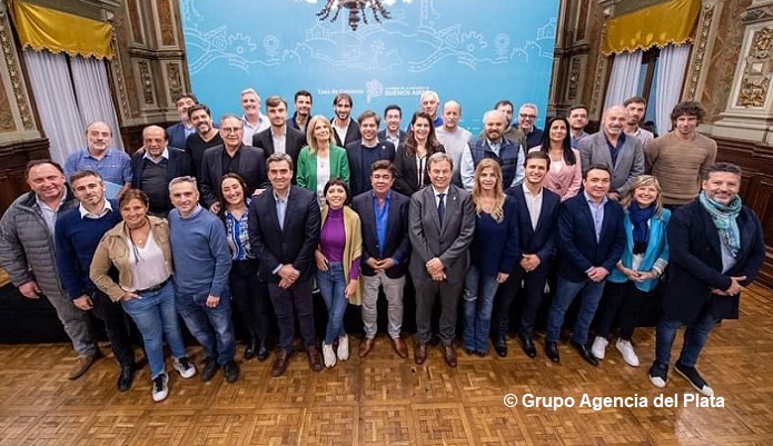 Junto al gobernador Axel Kicillof estuvieron la vicegobernadora, Verónica Magario; el jefe de Gabinete provincial, Martín Insaurralde; la ministra de Gobierno, Cristina Álvarez Rodríguez; el ministro de Desarrollo para la Comunidad, Andrés «Cuervo» Larroque; el ministro de Infreaestructura, Leo Nardini; el jefe de asesores, Carlos Bianco; y el presidente del Grupo Provincia, Gustavo Menéndez.