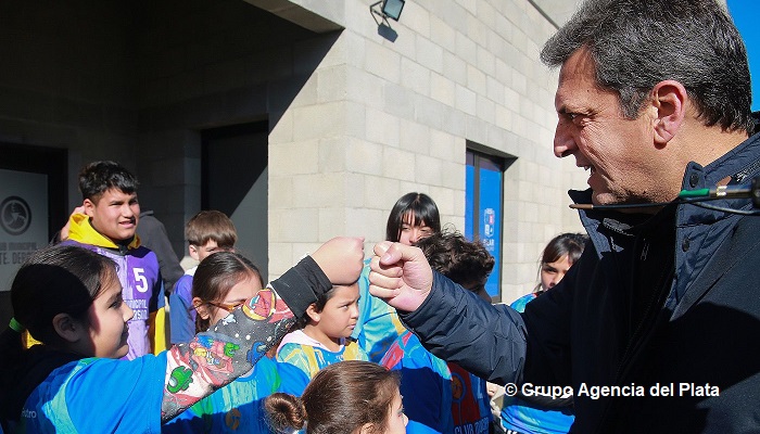 «Defendamos la Argentina del trabajo para poder pelear por una mejor puja distributiva», pidió Massa frente a los vecinos de la localidad de Presidente Derqui, en el acto de inauguración del Club Municipal Presidente Derqui «Lionel Messi», en Pilar, junto al ministro de Transporte bonaerense, Jorge D’Onofrio, y el intendente local, Federico Achával.