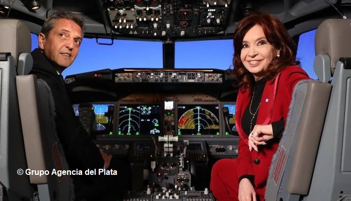 Cristina Fernández de Kirchner y el precandidato presidencial por Unión por la Patria (lista Celeste y Blanca) Sergio Massa, volvieron hoy a compartir un escenario para la inauguración de un simulador de vuelo de Aerolíneas Argentinas, donde ambos defendieron el rol del Estado y la Vicepresidenta reclamó al FMI que se haga cargo de sus propios desmanejos: «El Fondo, en su actual dirección, se tiene que hacer cargo del desmanejo que tuvo la anterior directora (Christine Lagarde) porque la continuidad institucional es para todos y todas», subrayó Cristina.