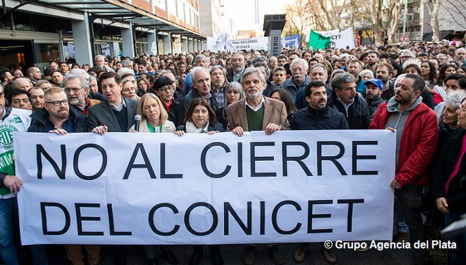 Científicos, investigadores y trabajadores participaron en la tarde de este jueves de una masiva movilización en la explanada del Polo Científico – Tecnológico, en el barrio porteño de Palermo, en «defensa del Conicet» y «del enorme desarrollo de la ciencia y tecnología nacional». Además, hubo otros puntos de encuentro en el interior como en Bariloche.
