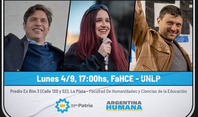 Unión por la Patria, en acción | El encuentro comenzará a las 17 horas en el Predio Ex Bim3 -en las calles 120 y 52 de La Plata- de la Facultad de Humanidades y Ciencias de la Educación de la UNLP. En caso de lluvia, no se suspende y va a realizarse en el auditorio de la Facultad.
