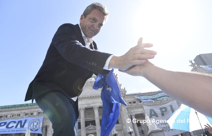 El ministro de Economía Sergio Massa agradeció a los trabajadores presentes, a diputados y senadores, así como a las presidentas de la Cámara de Diputados y de Senadores, con una especial mención a la vicepresidenta Cristina Fernández de Kirchner, por haber dado «este paso fundamental».