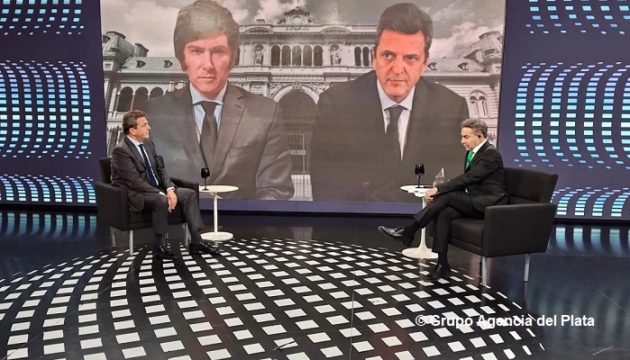 Sergio Massa negó llevar adelante “una campaña del miedo” y le contestó al periodista sobre el valor del precio del transporte público: “Sí me parece importante, en todo caso, que la campaña sea esclarecedora. Yo escuché en la entrevista que tan… la entrevista que le hiciste a Javier Milei la semana pasada, que la iba a calificar, pero no lo voy a hacer, y en ella Milei dijo que 1100 va a valer el boleto de tren sin subsidio, eso es un dato de la realidad”.
