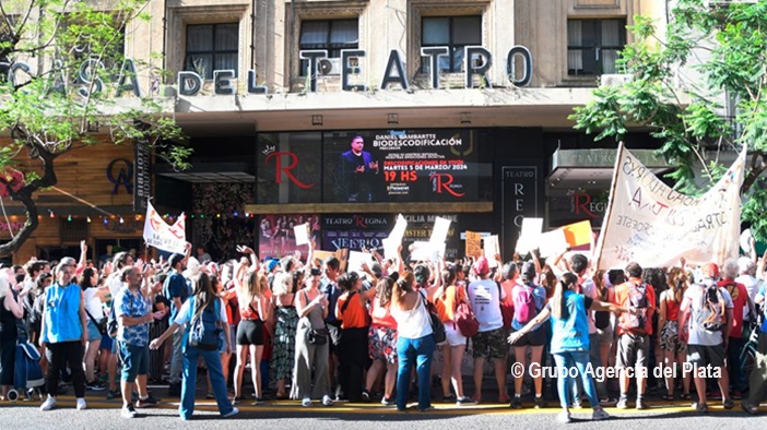 La protesta fue en contra del proyecto de ley que impulsa el gobierno de Milei y que prevé el cierre de dicho organismo, además de una fuerte reducción del financiamiento a las políticas de fomento al cine y la música. Comunicado de ex Directores Ejecutivos del Instituto Nacional del Teatro