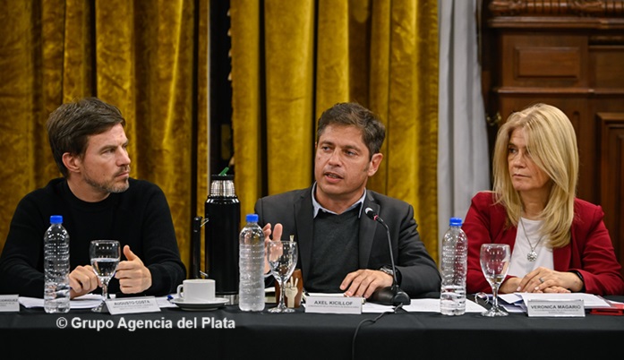 El encuentro se realizó en el Salón Dorado de la Casa de Gobierno junto a la vicegobernadora Verónica Magario; los ministros de Producción, Ciencia e Innovación Tecnológica, Augusto Costa; de Gobierno, Carlos Bianco; de Infraestructura y Servicios Públicos, Gabriel Katopodis; y de Salud, Nicolás Kreplak; el director general de Cultura y Educación, Alberto Sileoni; la presidenta del Instituto Cultural, Florencia Saintout; y el presidente de la Comisión de Investigaciones Científicas, Roberto Salvarezza.