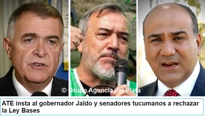 La Asociación Trabajadores del Estado (ATE) ha lanzado un llamado de alerta al gobernador de Tucumán, Osvaldo Jaldo, y a los senadores de la provincia, instándolos a rechazar tanto el pacto propuesto por el gobierno de Javier Milei como la Ley Bases que ya ha obtenido media sanción en la Cámara de Diputados.