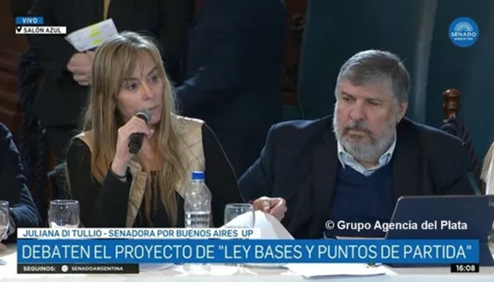 La senadora Juliana Di Tullio este lunes describió con un ejemplo práctico la forma en que podrían realizarse negocios privados en grave perjuicio del Estado, de aprobarse la Ley Bases impulsada por el presidente Milei en la Cámara Alta.