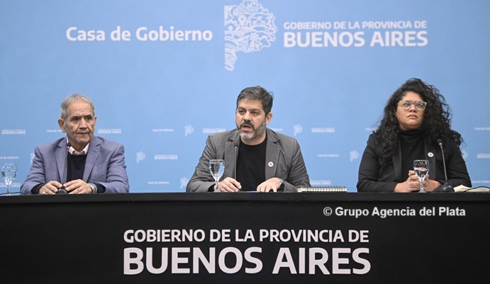“A diferencia de un Gobierno nacional que se rige bajo el lema de ‘obra pública cero’, en el Gobierno bonaerense estamos trabajando para continuar e impulsar esta política, porque se trata de un instrumento central para la creación de empleo, el desarrollo regional y la mejora de las condiciones materiales de vida de las y los bonaerenses”, afirmó este lunes el ministro de Gobierno, Carlos Bianco, durante una nueva conferencia de prensa en el Salón Dorado de la Gobernación. Estuvo acompañado por el diputado nacional por la provincia de Buenos Aires y secretario general de la Asociación Bancaria, Sergio Palazzo, y la directora ejecutiva del Organismo Provincial de Integración Social y Urbana (OPISU), Romina Barrios, quien presentó un informe sobre las obras ejecutadas por el Estado provincial en los barrios populares.