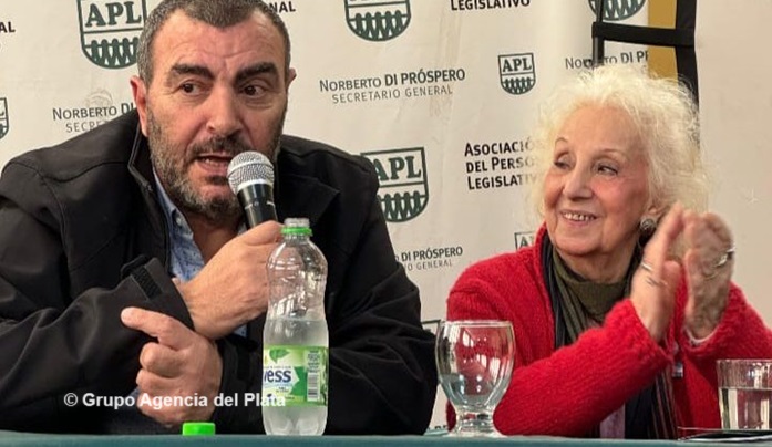 Además la presidenta de Abuelas fue declarada afiliada honoraria del gremio con el carnet número 1. También fue bautizada con su nombre la sala de reunión de la Secretaria de Derechos Humanos de APL, que conduce Elena Ferreyra. “Tener a Estela acá siempre es una caricia al alma”, expresó el secretario General de APL Norberto Di Próspero.