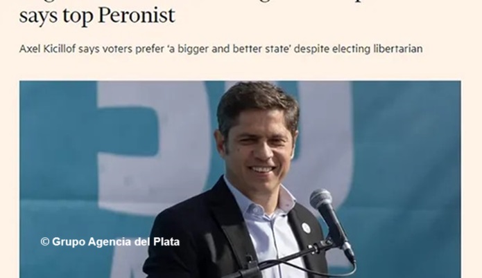 El gobernador de Buenos Aires, Axel Kicillof, sorprendió hoy con declaraciones ante el Financial Times (FT), uno de los diarios más importantes del mundo para el sistema financiero. Presentado como el “funcionario electo más influyente dentro de la oposición peronista”, criticó el rumbo del presidente electo Javier Milei y desafió al modelo libertario de ajuste draconiano del gasto público. “Los argentinos siguen amando al Estado grande a pesar de Milei”, definió.