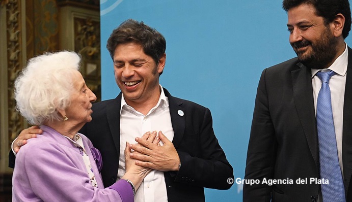 El gobernador de la provincia de Buenos Aires, Axel Kicillof, encabezó este martes un acto en conmemoración del Día Internacional de los Derechos Humanos. Fue en el Salón Dorado de la Casa de Gobierno, junto al ministro de Justicia y Derechos Humanos, Juan Martín Mena; el subsecretario de Derechos Humanos, Matías Moreno; y la presidenta de Abuelas de Plaza de Mayo, Estela de Carlotto.