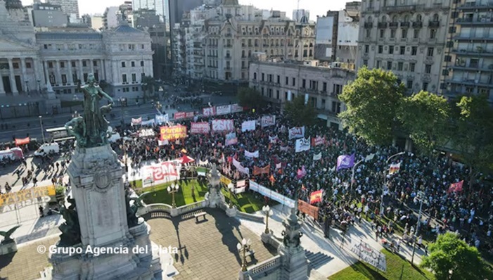 Masiva movilización en Argentina frente al Congreso Nacional, los jubilados llenaron la plaza acompañados por organizaciones sociales y gremios que se sumaron a la tradicional marcha de los miércoles. Se replicó en todo el país. Esta vez, el gobierno de Milei no reprimió.