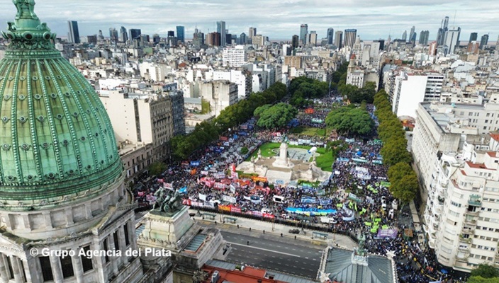 Con el apoyo de los gremios de la CGT y las dos CTA, la marcha de jubilados en defensa del sistema previsional, se convirtió en una masiva movilización al Congreso Nacional en rechazo a las políticas anarco-colonialistas del gobierno de Milei.