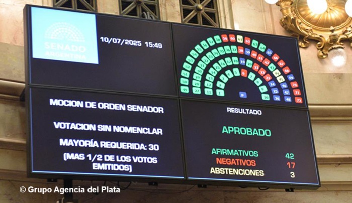 Pasada una larga discusión, la moción de Mayans resultó aprobada con 38 votos a favor de su interbloque, además de los radicales Pablo Blanco y Martín Lousteau, la larretista Guadalupe Tagliaferri y -muy llamativamente- el cordobés Luis Juez.
