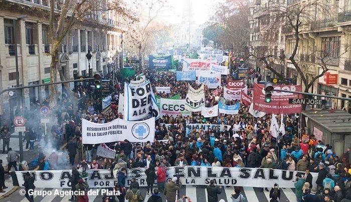 Trabajadores del Hospital Garrahan encabezaron este jueves una marcha a Plaza de Mayo «en defensa del hospital y la Salud Pública», en una multitudinaria movilización de la que participaron trabajadores de la salud, médicos y residentes de la institución, a quienes se sumaron también jubilados, gremios y organizaciones políticas.