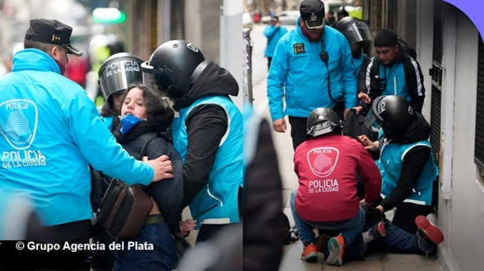 «Eligieron dos mujeres que estaban cerca del cordón policial. Entre 10 policías de civil de la ciudad las retuvieron con sus rodillas sobre el piso durante casi 10 minutos. Finalmente se las llevaron en un celular».