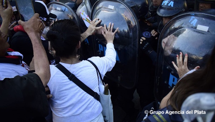 En efecto, las vías principales de conflicto fueron entre la Avenida Hipólito Yirigoyen, Rivadavia y Entre Ríos. De acuerdo a las imágenes que circularon de la marcha, los cordones policiales comenzaron a llevar a los manifestantes de la calle a la zona de la Plaza de los Dos Congresos y así liberar la traza con el tránsito.