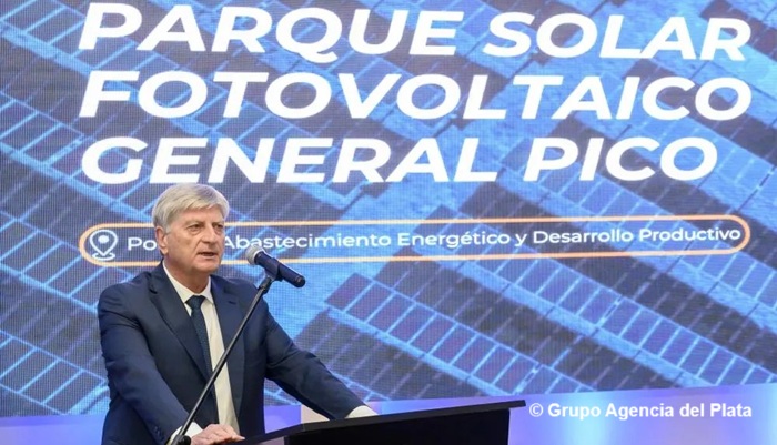 El gobernador Sergio Ziliotto encabezó en General Pico la firma del contrato para la construcción del segundo Parque Solar Fotovoltaico de La Pampa; el primero que se ejecutará con inversión mayoritaria privada y participación minoritaria del Estado. «Esta inversión inicial de 10 millones de dólares, en un 80% proviene del sector privado que confió en La Pampa, en el esquema y en la seriedad de la institucionalidad de nuestra Provincia. El otro 20% con recursos propios que administra Pampetrol», detalló Ziliotto.