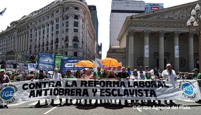 En medio del paro nacional con un nivel de adhesión que promedia el 93% en todo el país, una multitud de ATE se movilizó a la Plaza de Mayo para expresar el rechazo de los trabajadores al proyecto de reforma laboral del Gobierno: