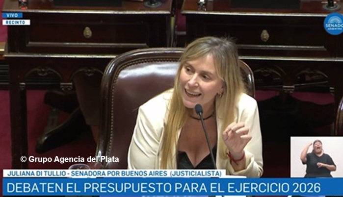 La senadora de Unión por la Patria afirmó que el presidente Milei «va a caer preso» una vez que concluya su presidencia. «El topo no solo vino a destruir el Estado desde adentro sino que vino a destruir el Estado Nación y eso es lo que está plasmado en el articulado de este presupuesto», lanzó Juliana Di Tullio que subrayó «El superávit tiene que estar supeditado a mejorarle la calidad de vida a los argentinos y argentinas».
